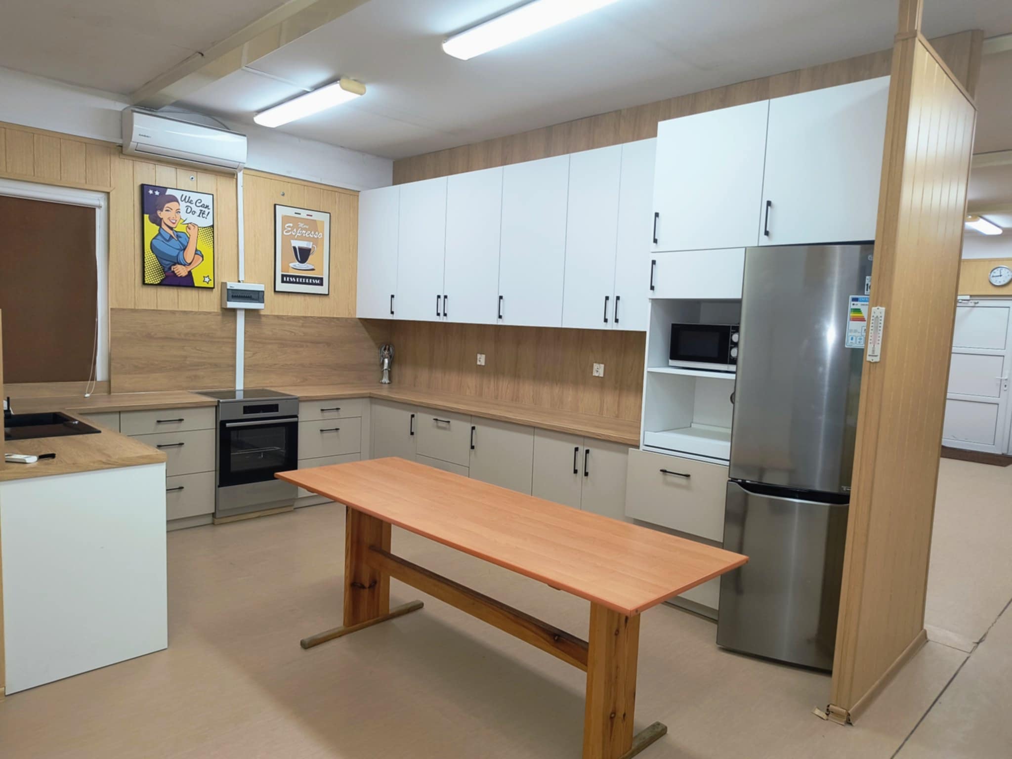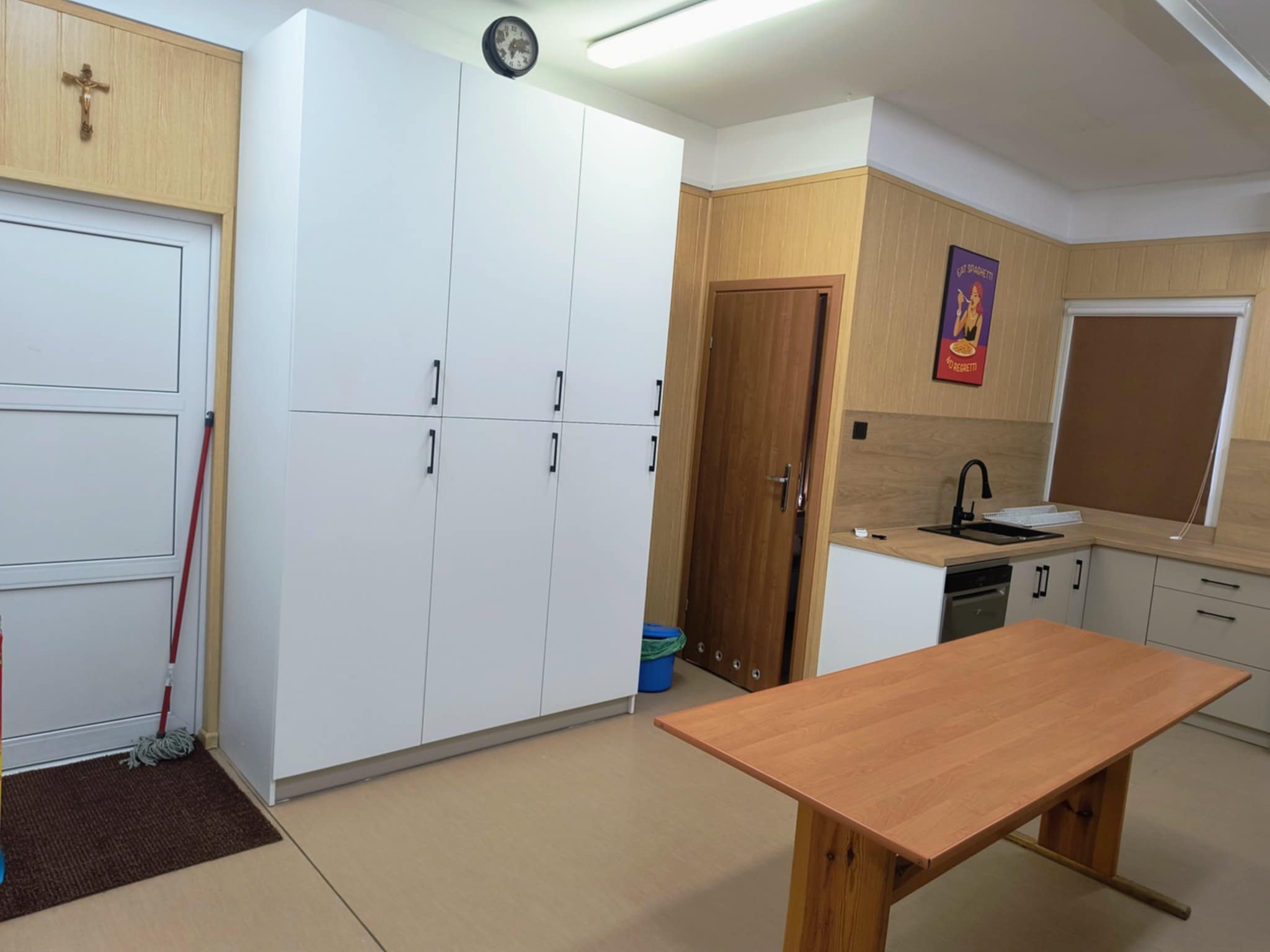 Świetlica wiejska, kontenerowa ( pow. użytkowa 82,11m2) z małym zapleczem kuchennym, znajdziemy tam nowe szafki, kuchnię gazową, lodówką i mikrofalówkę. Budynek z małą toaletą.